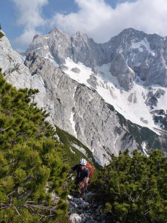 Zelo utrujen pohodnik . Od izteka smeri še pol ure hoda do vrha.