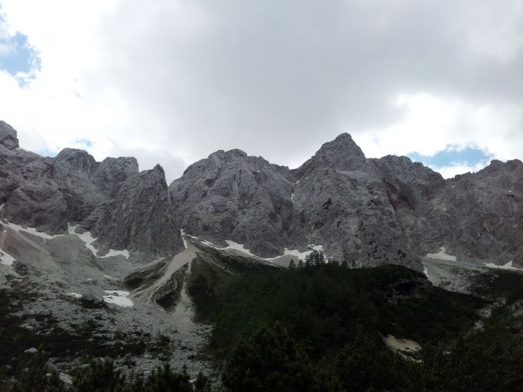 Ko sva sestopala sta dva plezalca abzajlala izpod rumene stene, ker sta ravno tako kot midva šla peveč gor