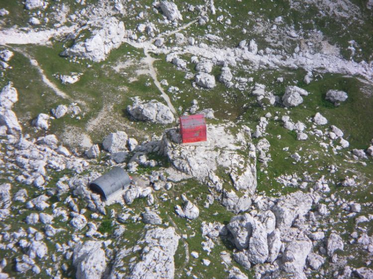 Tris pred bivakom. Vsakič ko sem se zadrl "Podri!" ali "Varujem", je Tris daleč spodaj začel lajati na moj odmev. Imel sem takorekoč svojega grupija, ki je navijal zame, medtem, ko sem plezal.