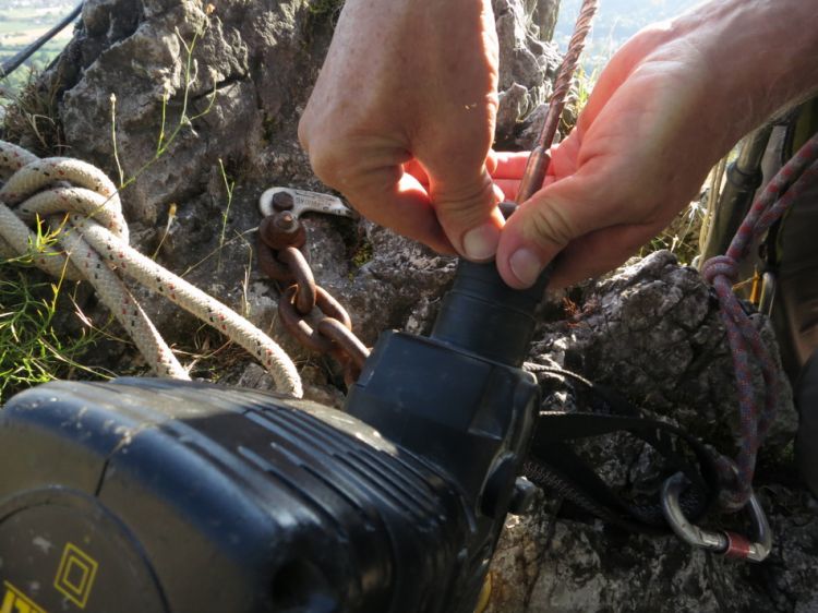 Priprave na delo na vrhu Velikega Turnca