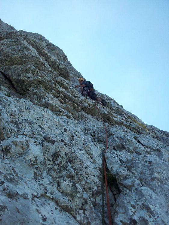 Lepo plezanje čez bele plati - zanimivo da tudi navidez kompaktna bela skala včasih votlo zadoni, mal paziš, pa ni panike