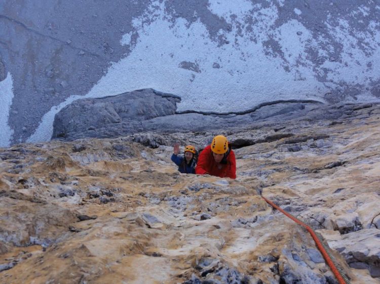 ker pa gre večinoma po zajedah, so bile vse mokre. Alenki je počasi zmanjkovalo volje do tega početja in tako se je bližal ključ smeri in mojih pet minut!