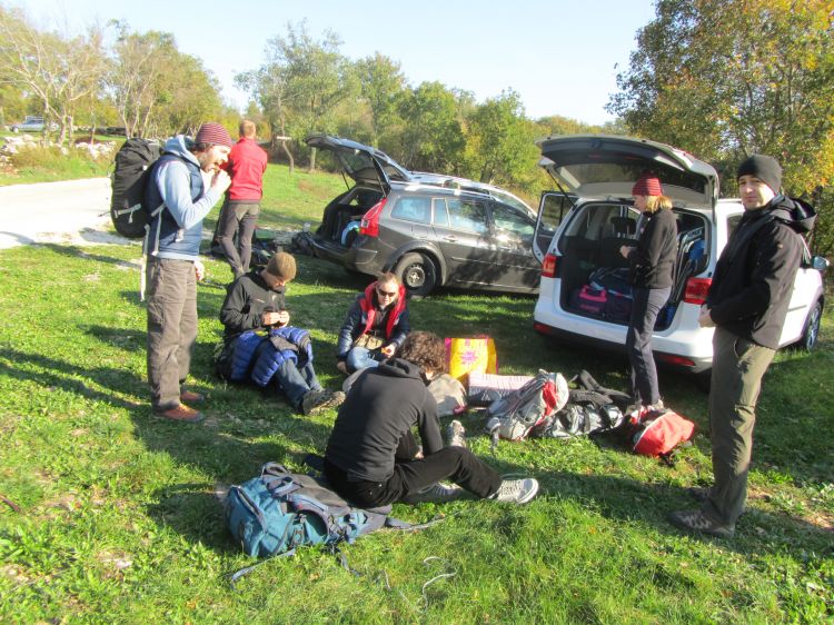 Na prkirišču pojemo vsak svoj sendvič, nato pa v akcijo.