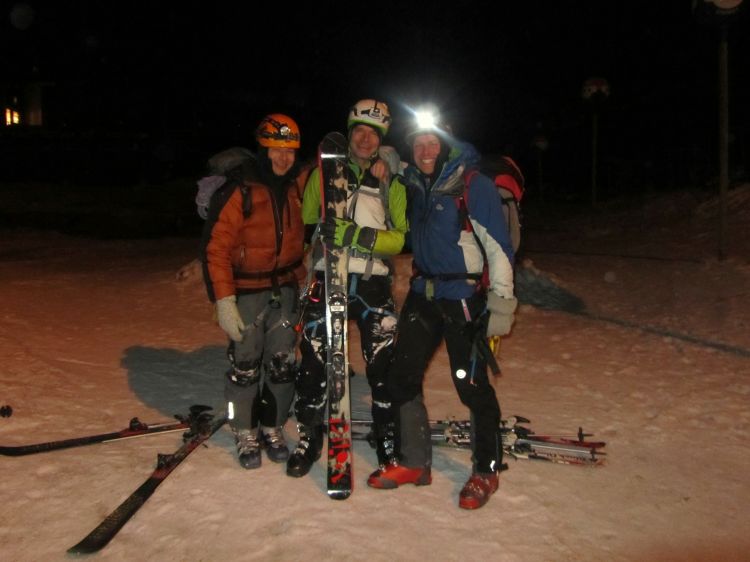 Ker smo s plezanjem začeli zelo pozno nas je valda ujela noč. S čelkami smo odsmučali v dolino, kjer nas je že čakal Matjaž z mrzlim pivom, punce pa so pripravile super večerjo.