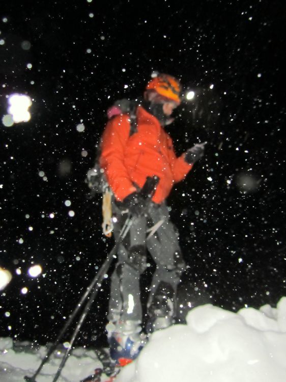 Miha pa v trdi temi in močnem sneženju le najde šotor, v katerem sva ga že zskrbljeno čakala.