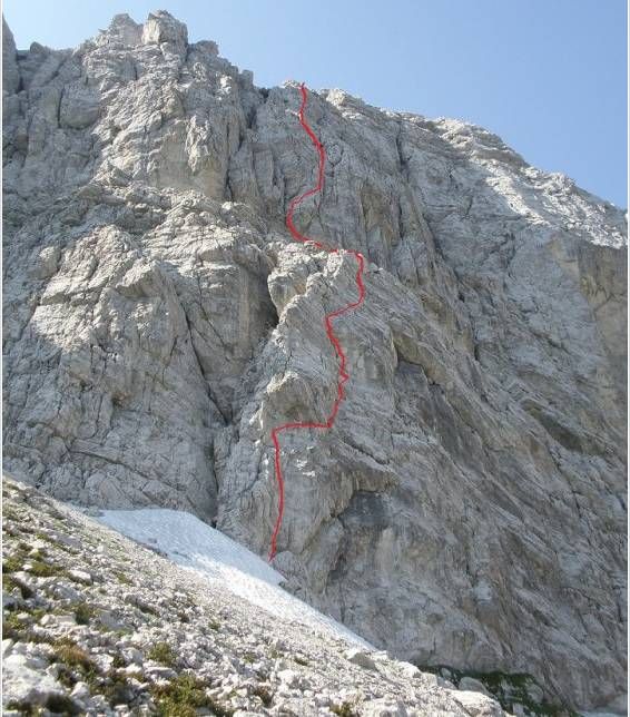 Približen potek smeri. Prva levo je smer Trmasti kamini, ki jo težko zgrešiš.
