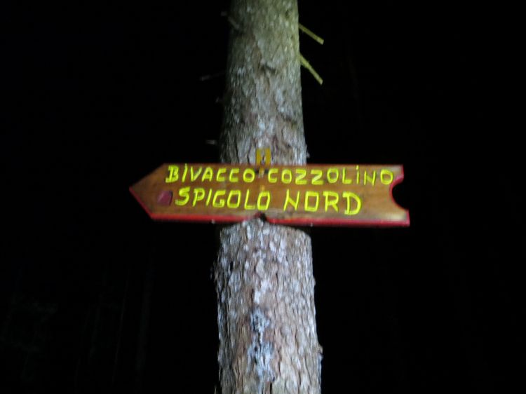 Budilka naju zbudi ob 03.45 zjutraj. Ob 04.30 skozi noč dostopava do stene. Že dan prej sva sklenila, da v bivaku Cozzolino ne bova prespala, temveč kar v avtu.
