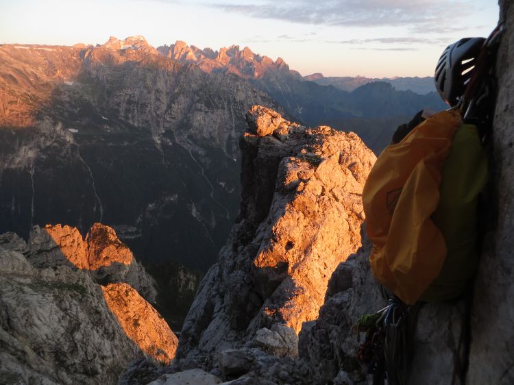 Ja, tu sva prespala. Najin prostorček pod zvezdami se je nahajal tik pod vršno glavo v zgornjem delu smeri. Sicer je tole jutranja slika.