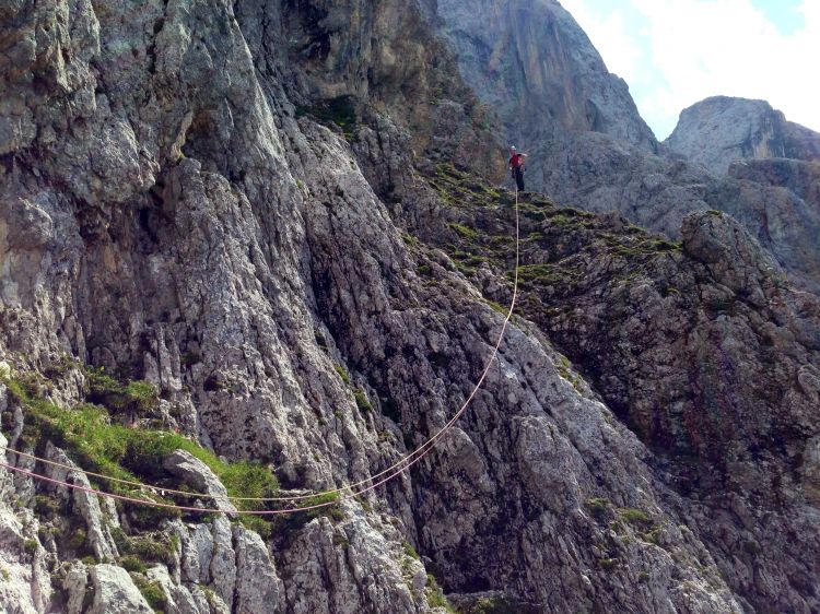 Eden lažjih odsekov, zato sem potegnil kar cel raztežaj brez vmesnega varovanja.