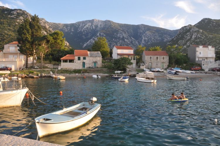 Dupa Pelješka, zadaj je viden vrh Sv.Ilija. Ena izmed poti naj bi šla naravnost po razu, ena nekje iz desne in ena ne ve se točno kje.