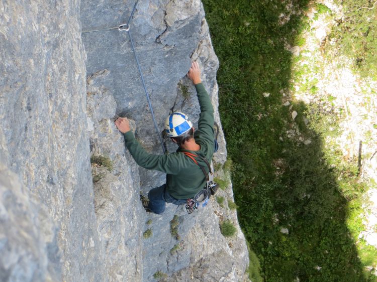 Edini raztežaj, ki sem ga plezal kot prvi, pa še prosto je šlo. Pa tudi ta ni bil čisto lahek.