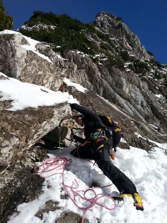 Kot zadnji še sam izdelam sidrišče za spust, tako, da skozi skalno uho napeljem pomožno vrvico, ki služi za varen spust.