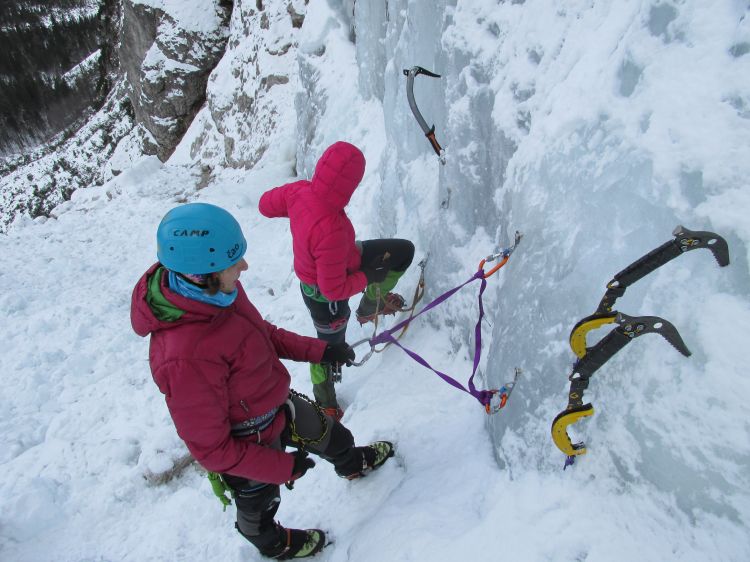 Sidrišča v ledu se praviloma dela tako, da se naredi zaporedno povezano sidrišče, kjer je stalno obremenjen samo en ledni vijak, drugi pa prevzame(jo) svojo vlogo, če začne prvi popuščati.