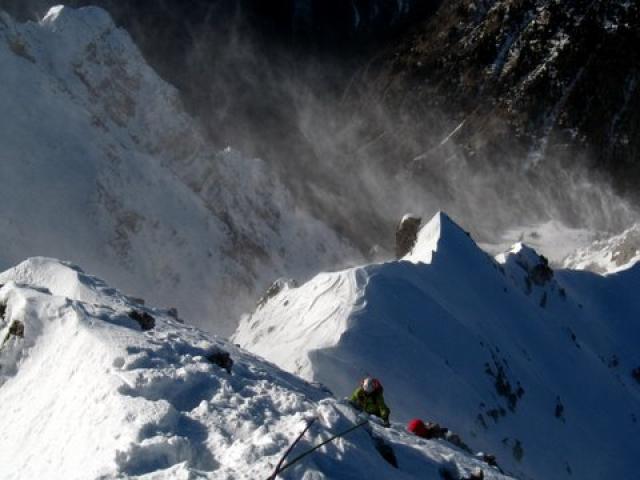 Če nas ne odpihne smo zmagali, s cepini in derezami se učvrstim v tla.