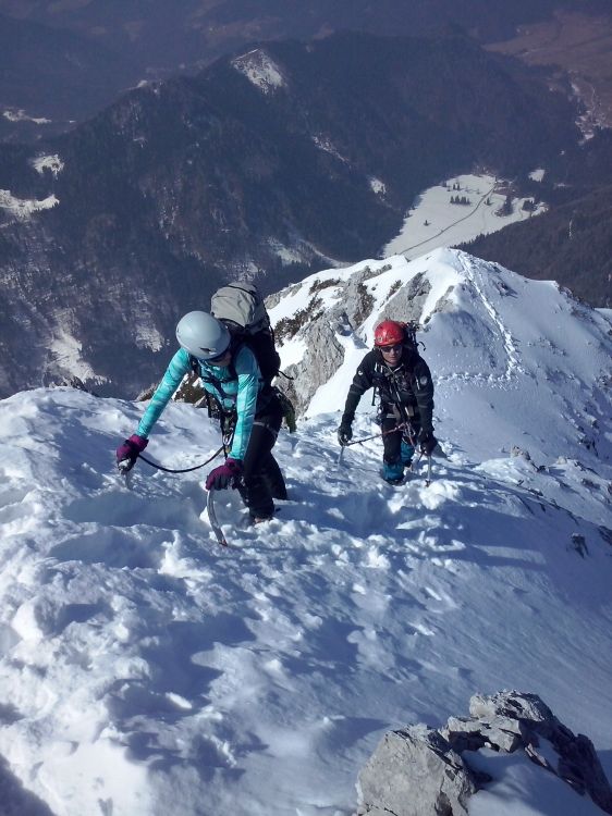 Tik pod vrhom...tukaj je bil sneg še dober. Tanja uživa