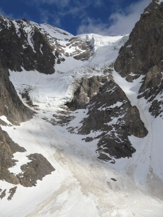 Naš 950-metrski viseči ledenik Hochferner v severni steni Hochfernerspitze.