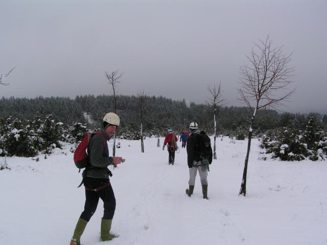 V jamo nas spremlja lep drevored.