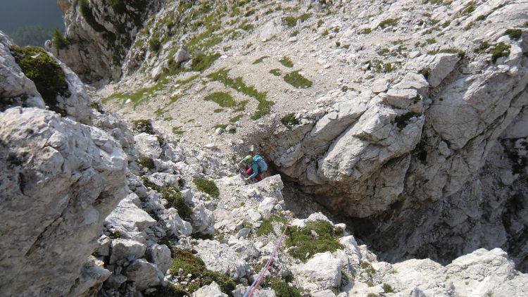 Dostop do Zahodnega raza Male Mojstrovke: izstop iz žleba v škrbino, kjer je res lep razgled...