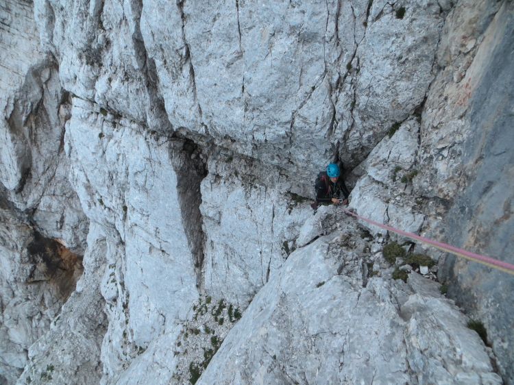 Zadnja slika, nato splezam še en, zadnji težak raztežaj v mraku, nato pade tema...