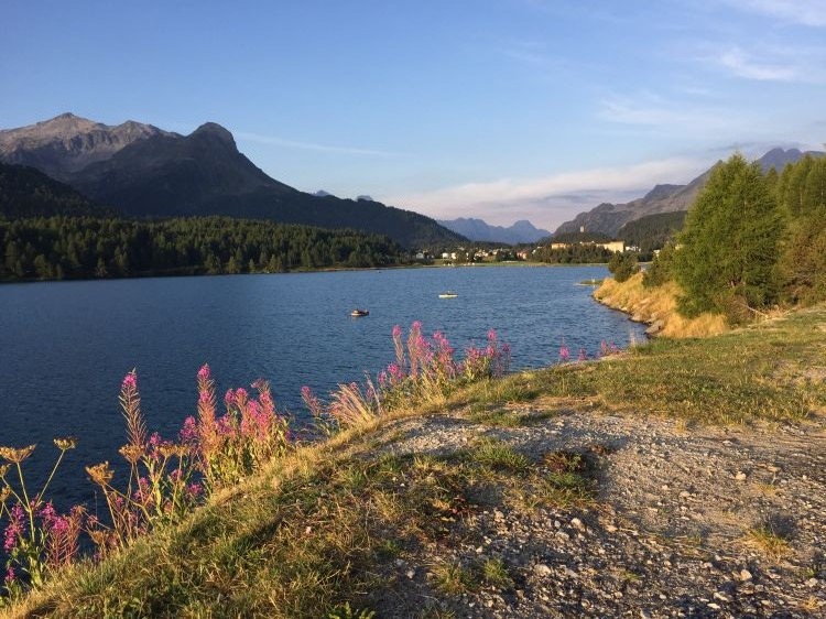 Jezero na vrhu prelaza na poti v St. Moritz.