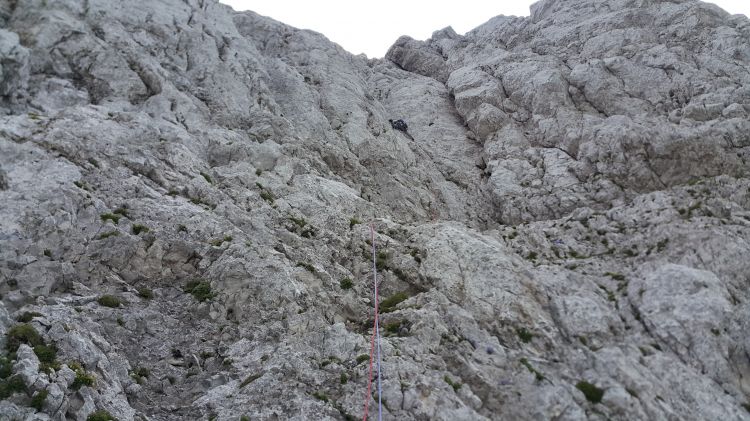 Malo desno čez plato poleg žleba.
