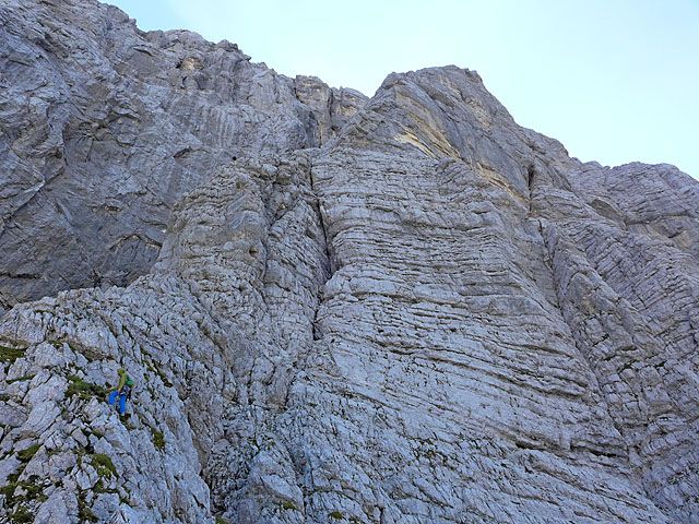 Zgornji del smeri poteka desno od Ladje, v liniji svežega podora