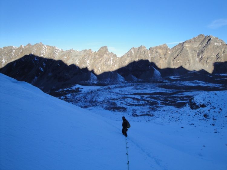 Dostop od koče Düsseldorferhütte čez ledenik Zayferner do vznožja severne stene Vertainspitze.