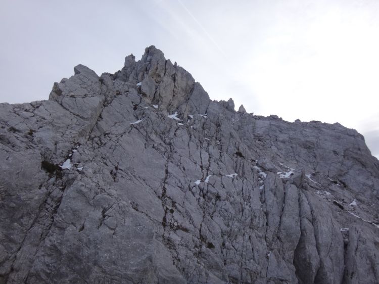 Vrh Rigljice v ozadju, kjer sta vidna dva stolpiča.