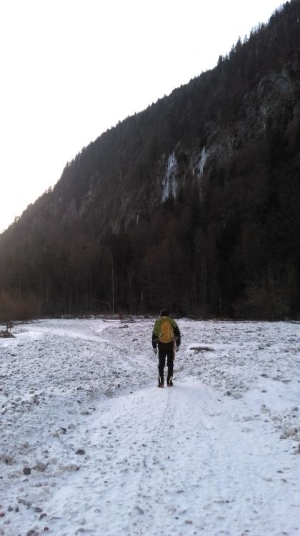 Na dostopu do Luciferja po suhi strugi Save Dolinke.