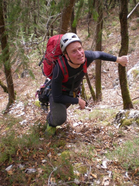 Štart Raza stolpa je kar v strmem gozdu.