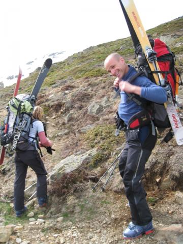 Zapodil smo se v prvi breg, čeprav je tam zelenela trava in bi lahko nabiral brusnice, če nas ne bi bolel križ.