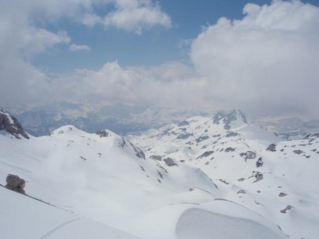 Desno obe Tičarci, zadaj Spodnje bohinjske gore