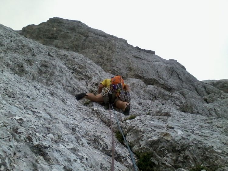 Po 300m šodra prideva do stebra. Skala že na začetku potrdi pričakovanja.