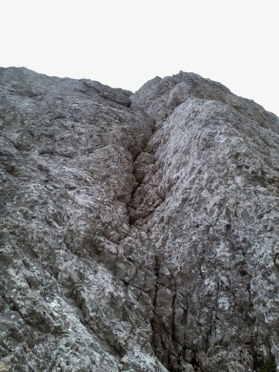 Za vogalom pa naju pričaka navpična zajeda, ki je prva pritegnil moj pogled na ta del stene.