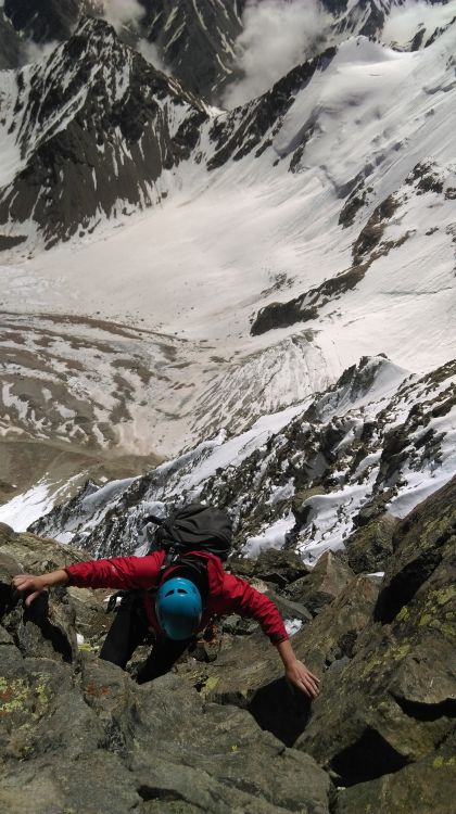 Plezanje po skalnem grebenu ni težko, je pa nekajkrat kar izpostavljeno.