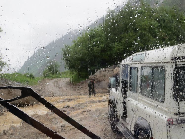 deževni zastoj, naprej smo morali avtobusek zamenjat za robusten kamijon
