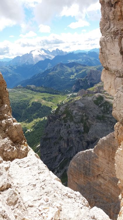 ...ma me je pogled na Marmolado malo relaksiral. Na sosednjem razu v Tofani je videti plezalca