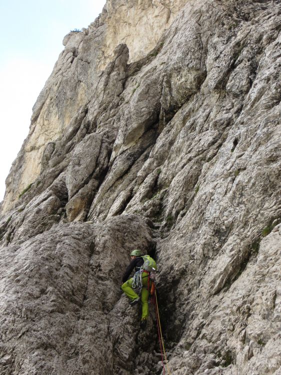Jasmina v smeri proti stolpu. Pot do tja vodi skozi spodnjo zajedo (kaminček), nad katerim je kamen v obliki štruce. To je iz opisa smeri, a samo za ljudi, ki si znajo to predstavljat.