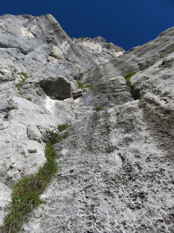 Plezanje je ves čas zelo strmo in izpostavljeno ter lepo, pa tudi zahtevno.