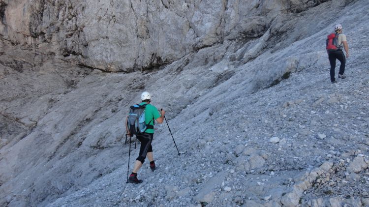 Večji del poti poteka po krušljivih gredah in policah.