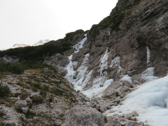 Potem naletimo na slap Srečno Kekec, v katerem je ena naveza že plezala.