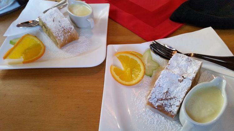 apflštrudl mit vanili kreme