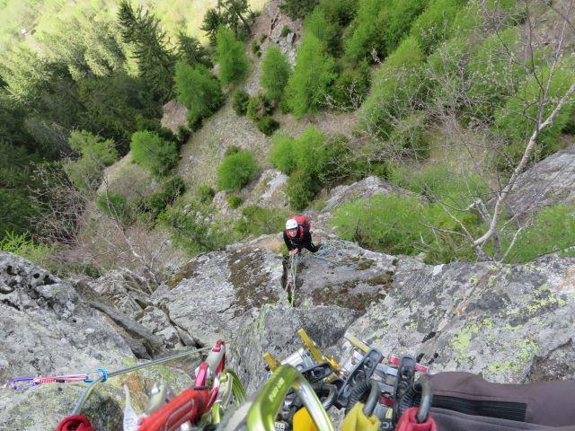 Štant na dva metulja in eno jebo. Plezam zadnji del prvega raztežaja.