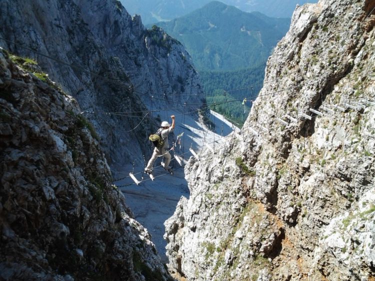 Ta mostiček je videti tako zabaven, da ne opazim krajše ferate po levi strani.