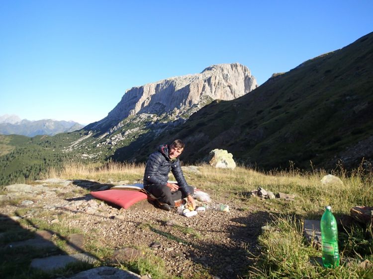 Zajtrk s pogledom na današnji cilj.