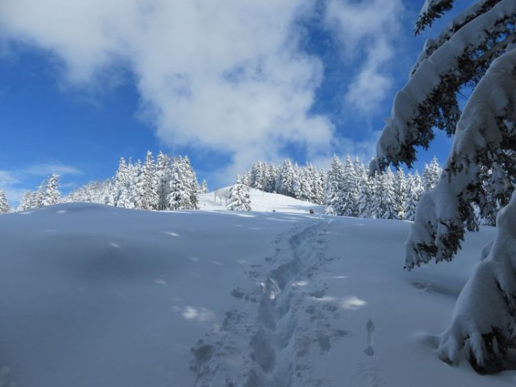 Začetek Kašne planine. V daljavi zagledam skupino pohodnikov.