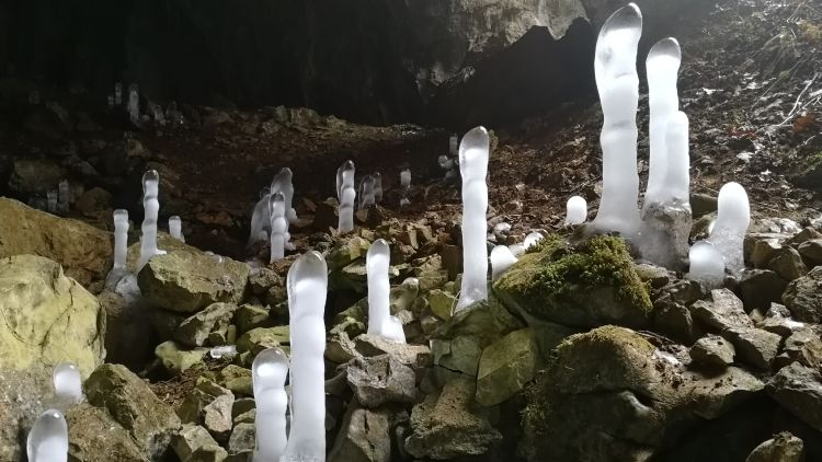 Ledeni stalagmiti na vhodu