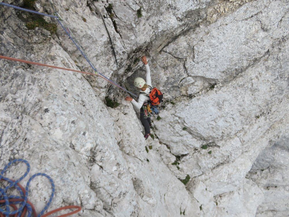 V detajlu (na sliki dobro viden črn, star in dolg prusik, ki služi za poteg, če ne zmoreš prosto