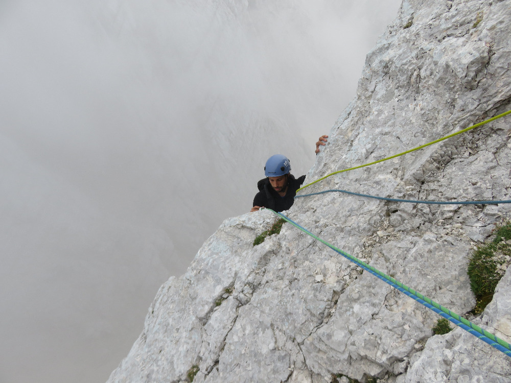 Eden težjih detajlov čez previs v zgornjem delu (Jošt)