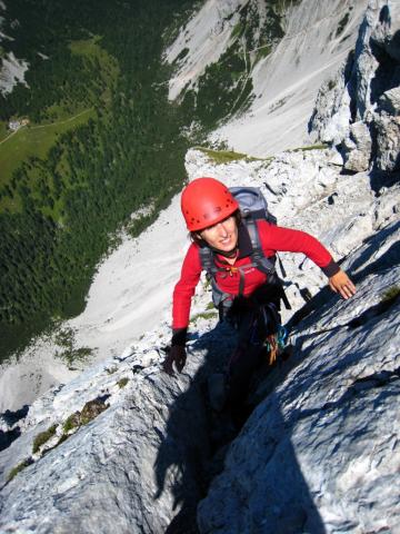 Tik pod vrhom Celovške špice (v normalki), v ozadju Celovška koča.